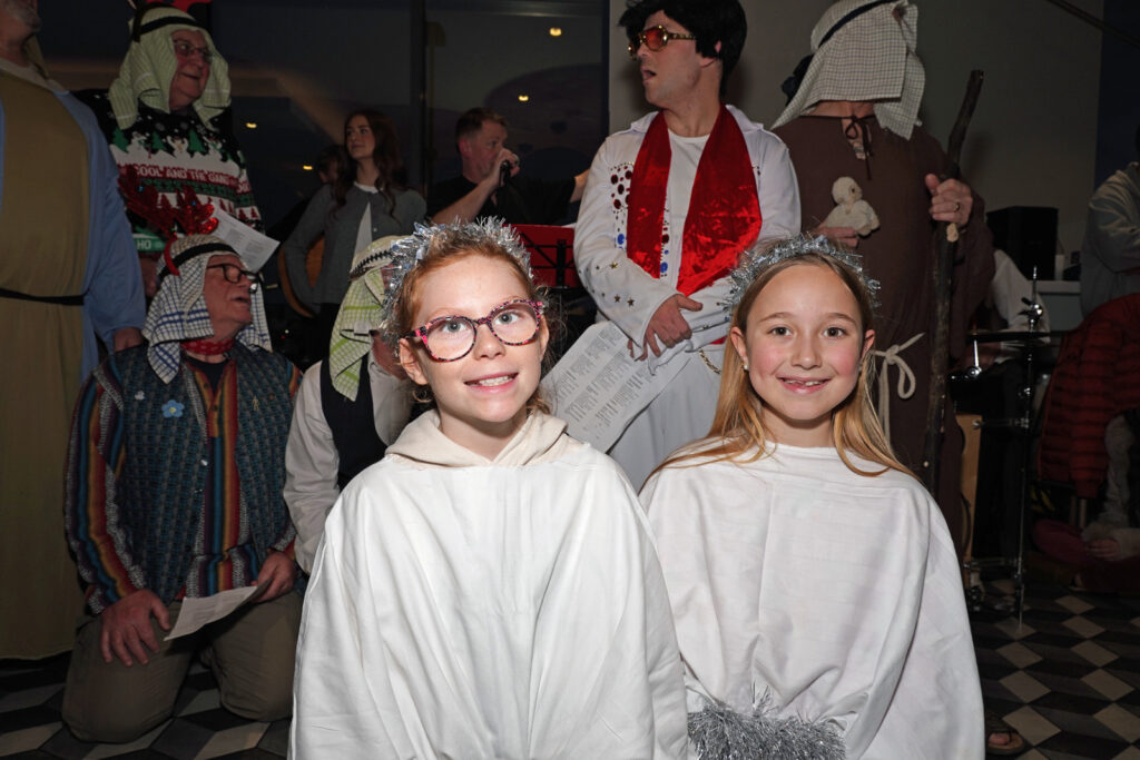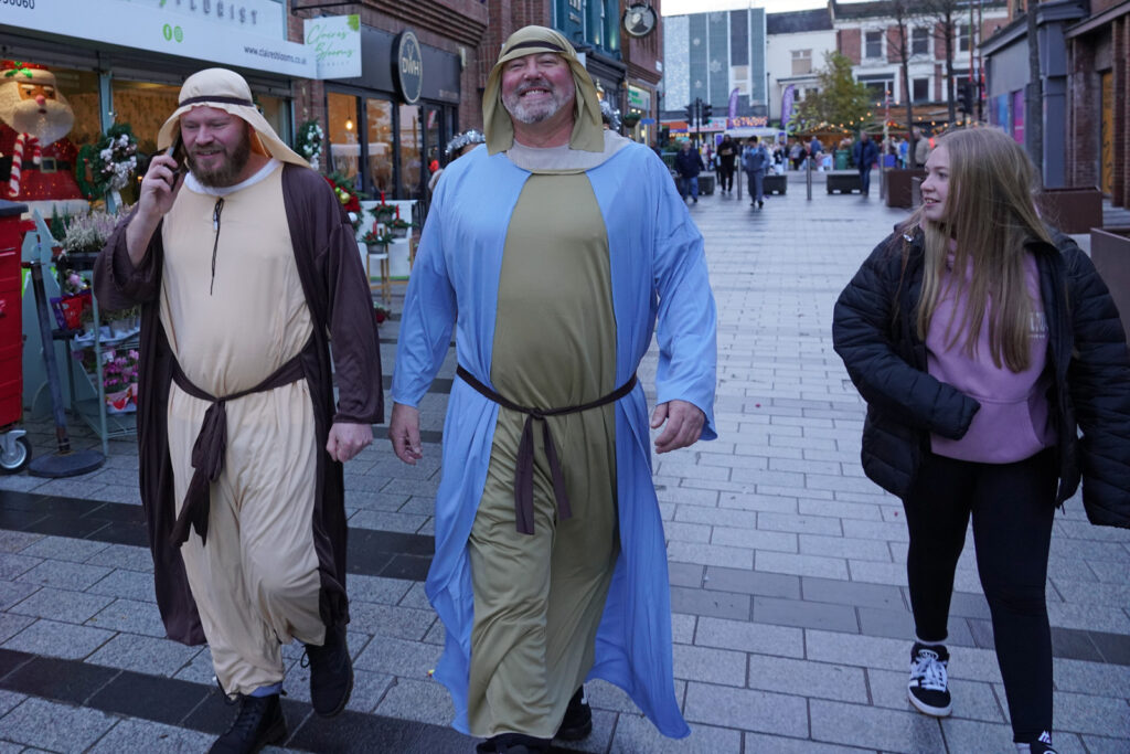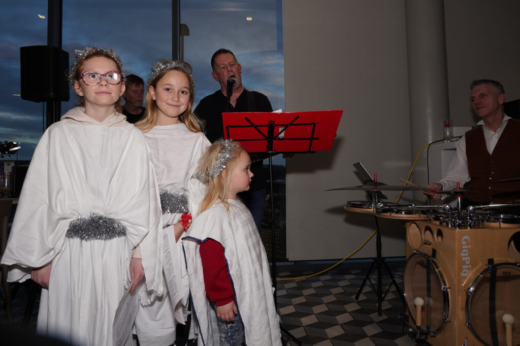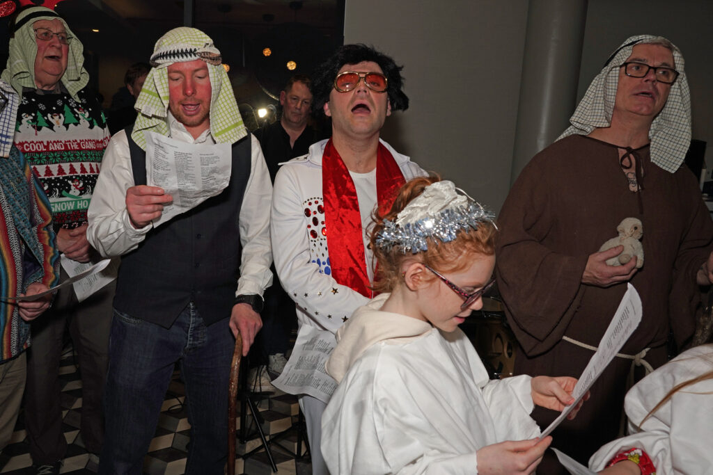 This week some of our StarmakerZ choir dressed as angels so they could be part of a Stockton Nativity organised by The Infant Hercules Choir. Other members of our choir went along to join in the Christmas singalong, which took place in Stockton’s Hilton Hotel. The event was a humorous retelling of the nativity tale, with a local twist, plus a sing-along with traditional carols and some more modern songs, which was enjoyed by everyone who attended. “Infant Hercules was formed as part of the Festival of the North East in 2013. Supported by Theatre Royal, Mike McGrother assembled a group of men through the persuasive ‘arts’ medium of a ‘Free Pint’. From small beginnings in the Red Lion, Norton, the group soon grew and now meets on Thursday evenings upstairs in The Storytellers Pub or in The Arc on Dovecot Street in the town. Singing songs of lads and dads in the key of Ale, the choir is open to all men and boys who want to sing with pride about the past, the current and the future of Teesside.”